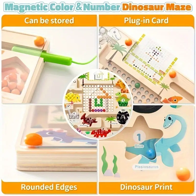 Leiskite savo vaikui pasinerti į linksmybėmis užpildytą ir lavinantį žaidimą – magnetinį dinozaurų labirintą! Šis inovatyvus žaislas ne tik praturtins jūsų mažylio kasdienybę, bet ir padės ugdyti svarbiausius įgūdžius. Naudodami pridedamą magnetinę lazdelę, vaikai galės perkelti spalvotus rutuliukus per labirinto vingius, lavindami smulkiąją motoriką, spalvų atpažinimą bei loginį mąstymą.